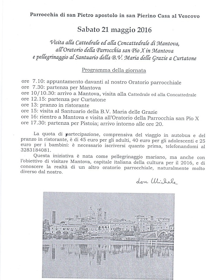 Una grande gioia e un bel senso di comunità, questi i sentimenti che si respiravano al rientro dalla città di Mantova, luogo scelto come meta del tradizionale pellegrinaggio che ogni anno la nostra parrocchia organizza nel mese di Maggio. La partecipazione è stata numerosa, tanto…