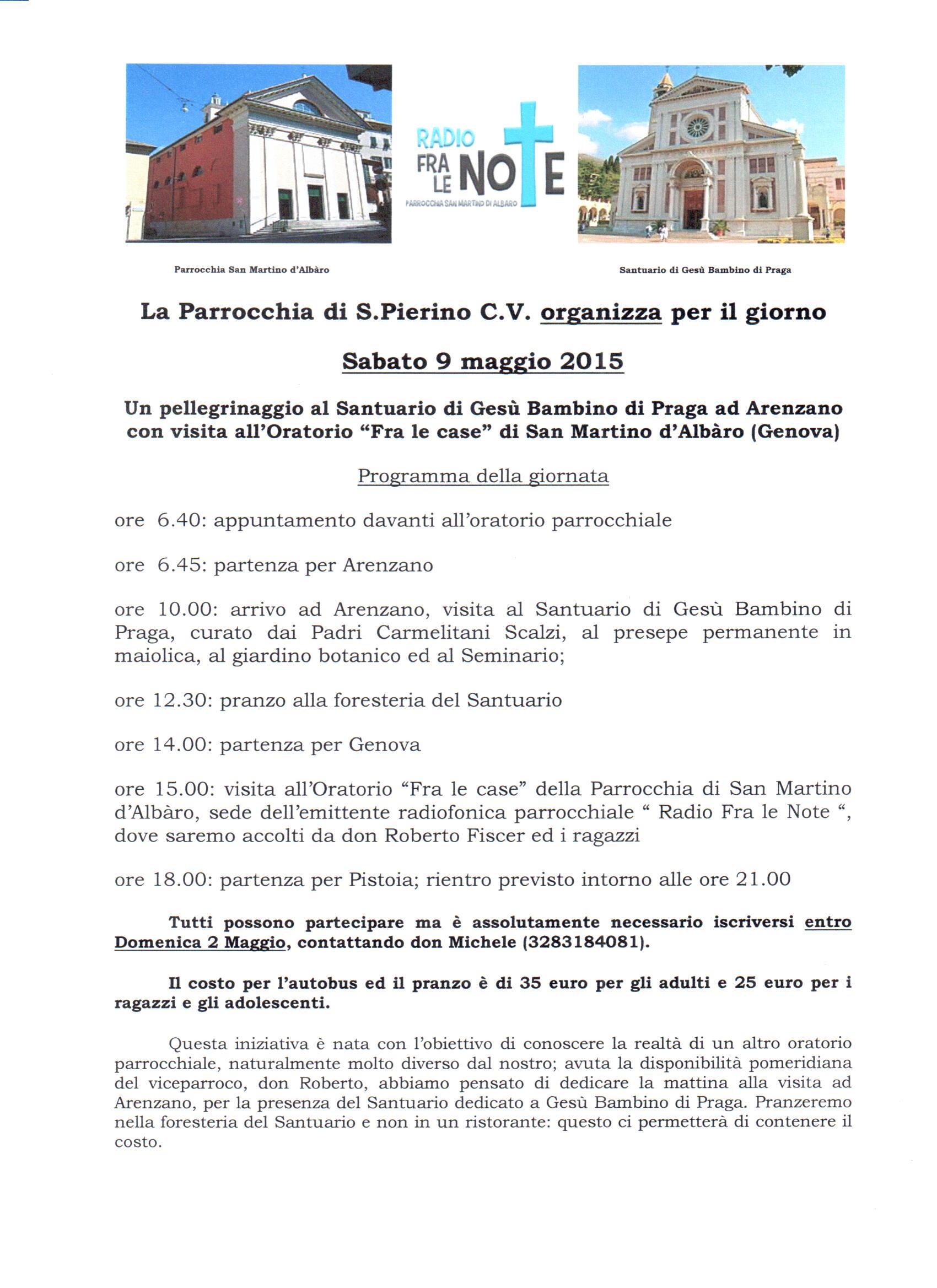 Sabato 9 Maggio la nostra parrocchia ha vissuto una bella giornata comunitaria recandosi in pellegrinaggio al Santuario di Gesù Bambino di Praga in Arenzano sulle alture di Genova. Nel pomeriggio abbiamo realizzato il desiderio originale che ha dato l’idea a questa iniziativa andando a visitare…